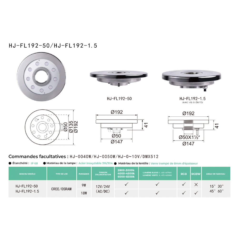 Éclairage HJ-FL192-50 Étanche - Fiche Produit