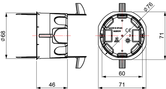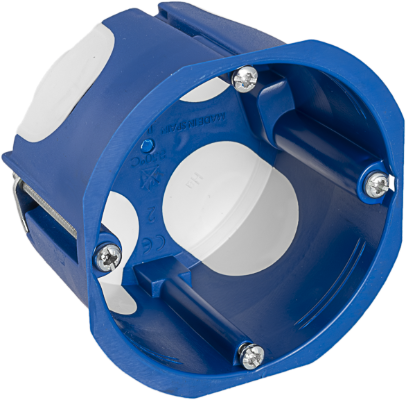 Boîte efficient d'appareillage pour encastrer en cloison sèche. Pour 2 modules. Système de fixation avec griffes en métal. Dimensions pour encastrer Ø 68 x 46 mm. 2 entrées pour tube Ø 16-20 mm. 2 entrées pour tube Ø 20-25 mm. Utilisez une couronne Ø 68 mm.
