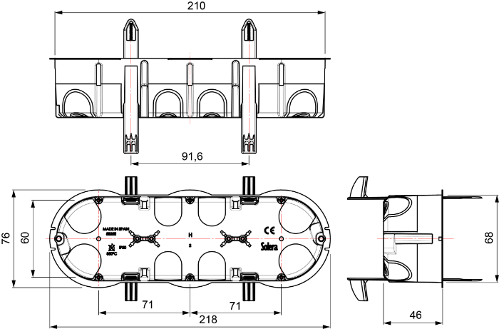 Boîte d'Encastrement Étanche à l'Air 3 Postes 218x68x46 5825E SoleraType de Produit :