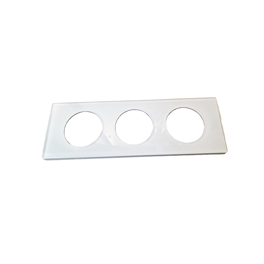 - Utilisation : Couvre et protège trois interrupteurs ou prises électriques montés sur un boîtier triple poste, avec un design élégant et moderne.