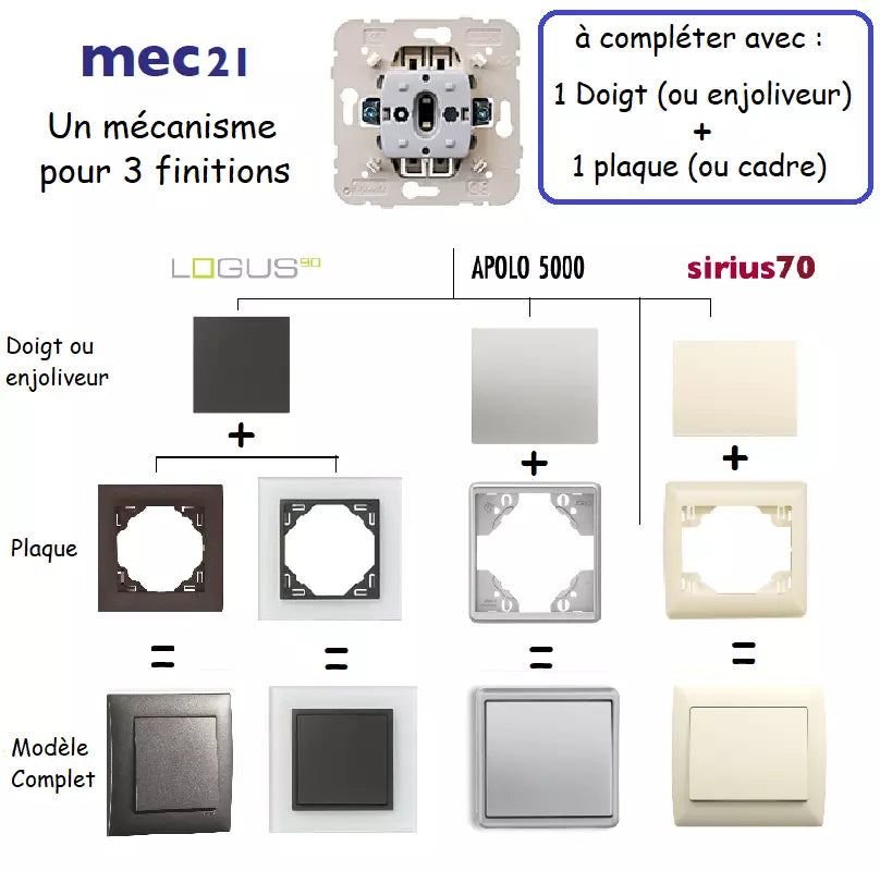 Pour Logus 90 : Doigt lumineux Réf. 90602T + Plaque Logus 90