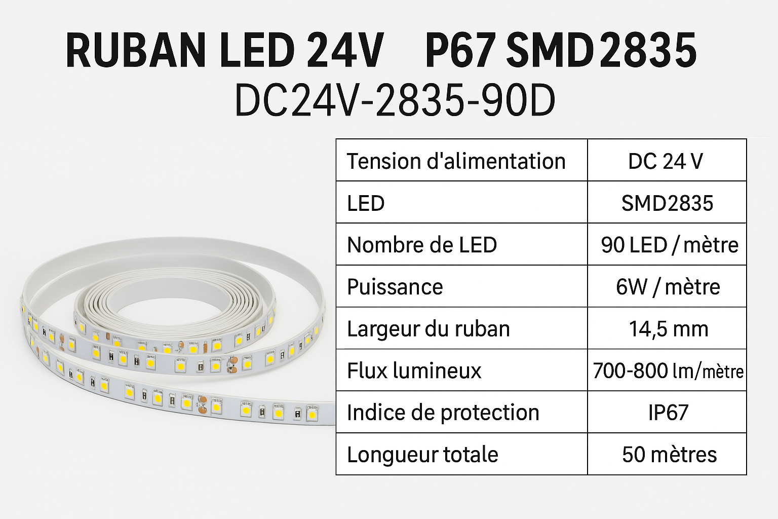 Fiche Technique – Ruban LED 24V IP67 SMD2835 – DC24V-2835-90D